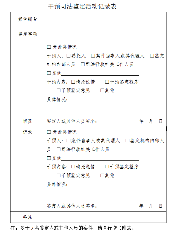 第四条 干预司法鉴定活动实行零报告制度。对于有本规定第三条规定情形的,鉴定人或者鉴定机构其他人员应当及时固定相关证据,填写《干预司法鉴定活动记录表》(见附件)并签名、存入司法鉴定业务档案,做到全程留痕,有据可查。